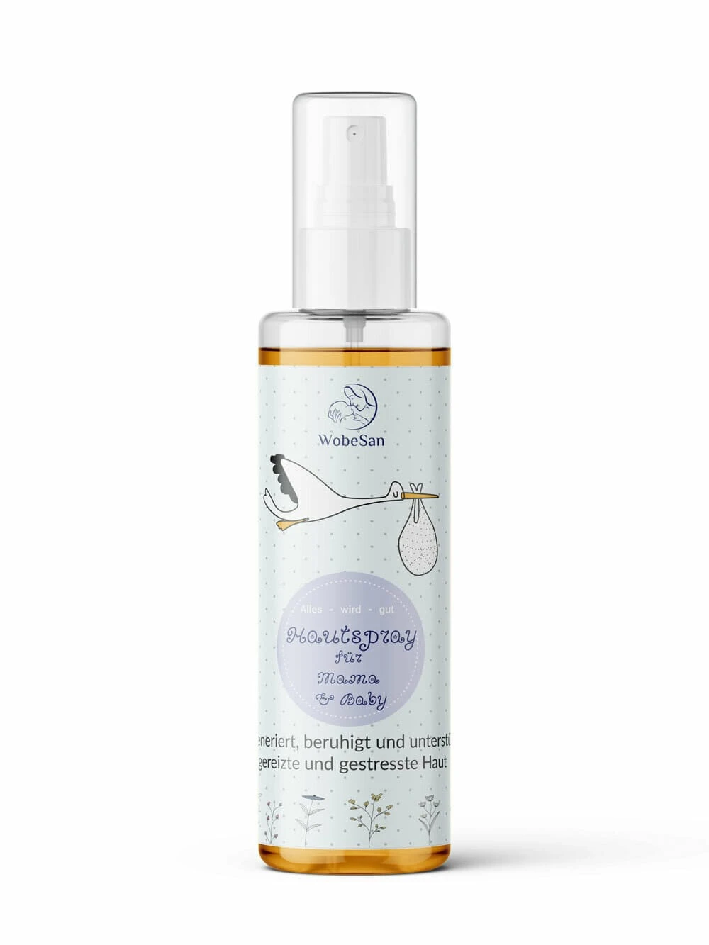 Hautspray für Mama und Baby regeneriert, beruhigt und unterstützt gereizte und gestresste Haut.