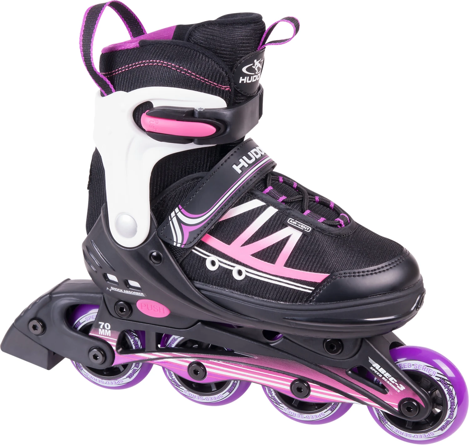 Rasante Fahrten mit den Inlinern RX-21 von HUDORA. Schnell und funktional lassen sich die Inliner mit einem einfachen Druck-Knopf in 4 verschiedene Größen einstellen. Bequem und trotzdem robust sind die Inliner durch die schlagfeste Nylon Schale außen und die Softboots innen. Die Speed-Rollen sorgen für ein sicheres Rollen bei höheren Geschwindigkeiten. Für ein angenehmes Fahrgefühl sorgen die ABEC 3 Kugellager.