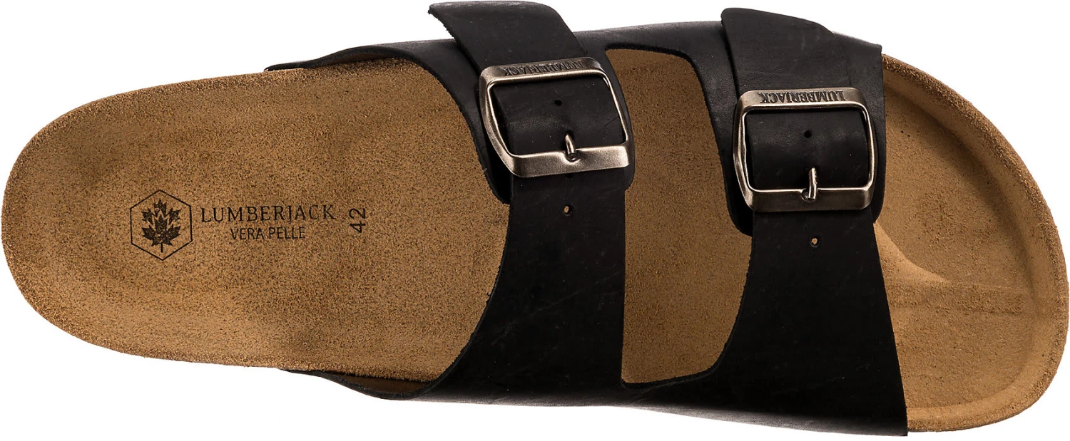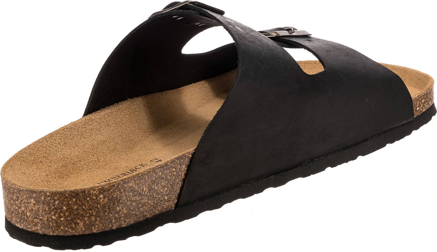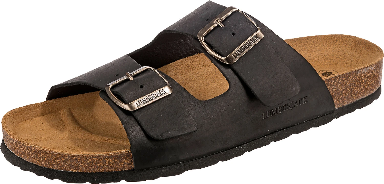 Auf Schritt und Tritt: Die Pantoletten der Marke *Lumberjack* begleiten Sie perfekt durch den Tag. Für ein angenehmes Tragegefühl besteht das Fußbett aus Leder. Das Schuhpaar ist aus echtem Leder. Die Schnalle sorgt für eine individuelle Regulierung der Weite.